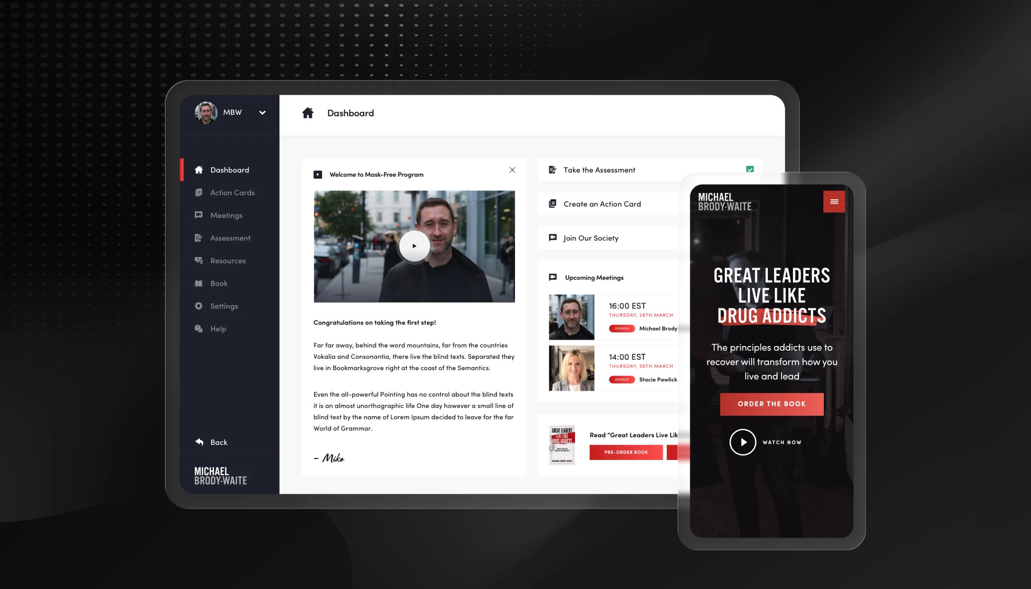 We approached the entire user experience with future growth and Michael's vision at the forefront. Knowing that Michael was looking to build a large community over the next few years, we created a digital platform/portal for Michael's paid and unpaid followers to access resources as well as participate in live calls, 'sponsorship' and other activities associated with Michael's Mask-Free program.